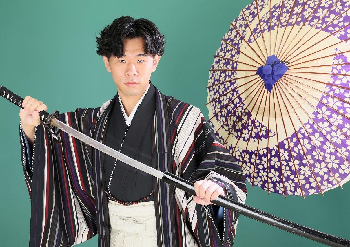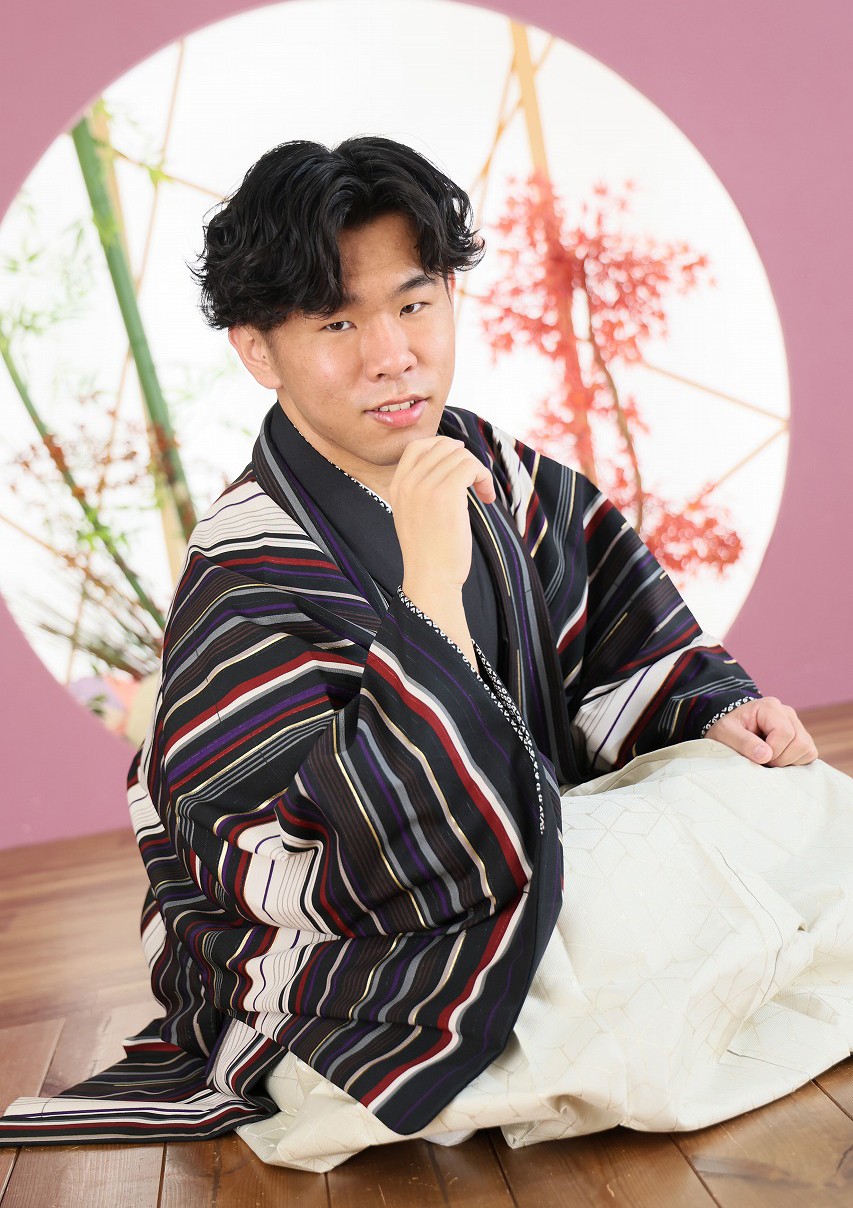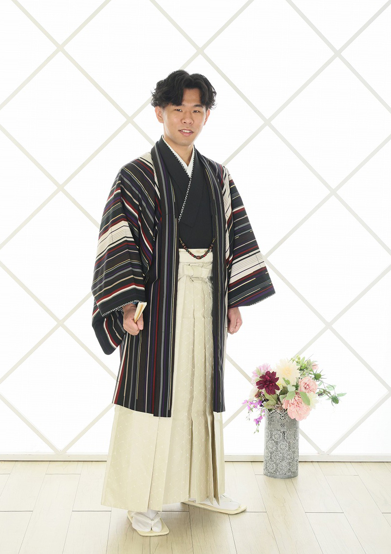着てきてくださったスーツと当館の袴で