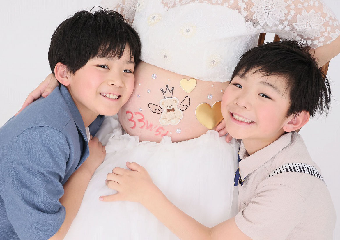 ママのお腹に文字をお兄ちゃんが書いてくれました😉